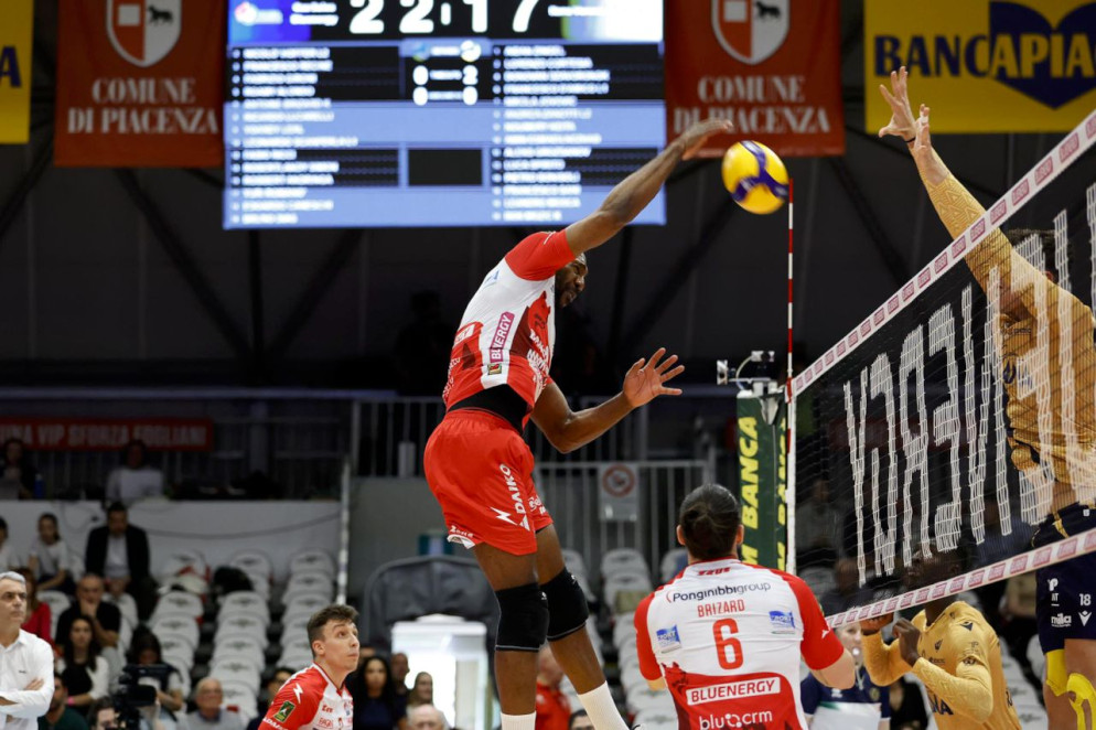 Partenza sprint di Gas Sales Bluenergy Volley Piacenza (3-0) ma due errori in attacco e una battuta sbagliata dei biancorossi permettono a Verona prima di impattare a quota tre e quindi mettere la freccia (3-4). Piacenza ci impiega qualche scambio prima di trovare la parità a quota 7 con l’ace di Brizard, sono ancora gli scaligeri a trovare il doppio vantaggio sul dieci pari (10-12), la parità arriva a quota 13 con il muro biancorosso protagonista. Brizard scatenato, punto di fino con il secondo tocco, due muri consecutivi del regista biancorosso e poi bomba di Romanò, 17-14 con Verona a chiamare time out. L’ace di Lucarelli vale il più cinque (21-16) con Verona a chiamare il secondo time out a disposizione, alla ripresa del gioco punto di Simon (22-16), il primo di cinque set point (24-19) arriva con Romanò, si va al cambio campo sulla battuta lunga di Sani.