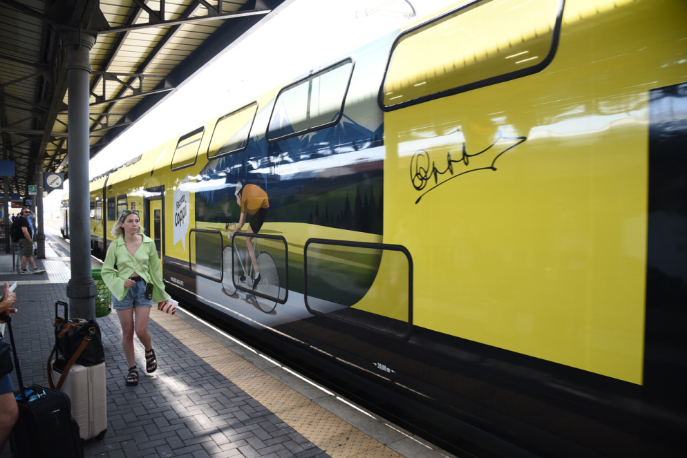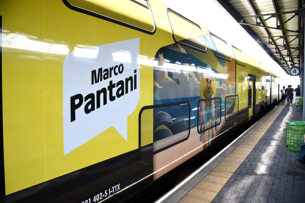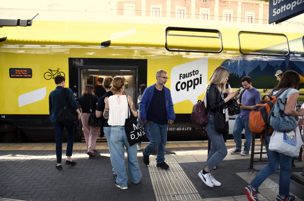 Il Tour de France tinge di giallo la stazione di Piacenza: è il treno della Grand Bouclè