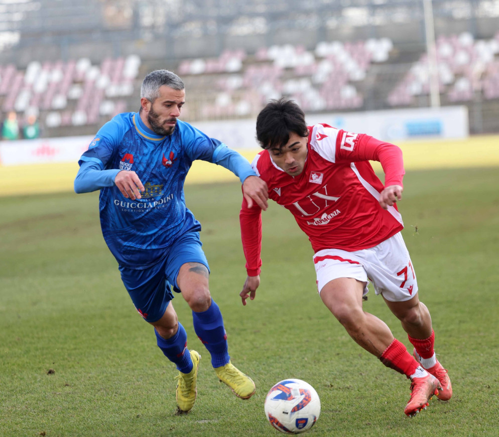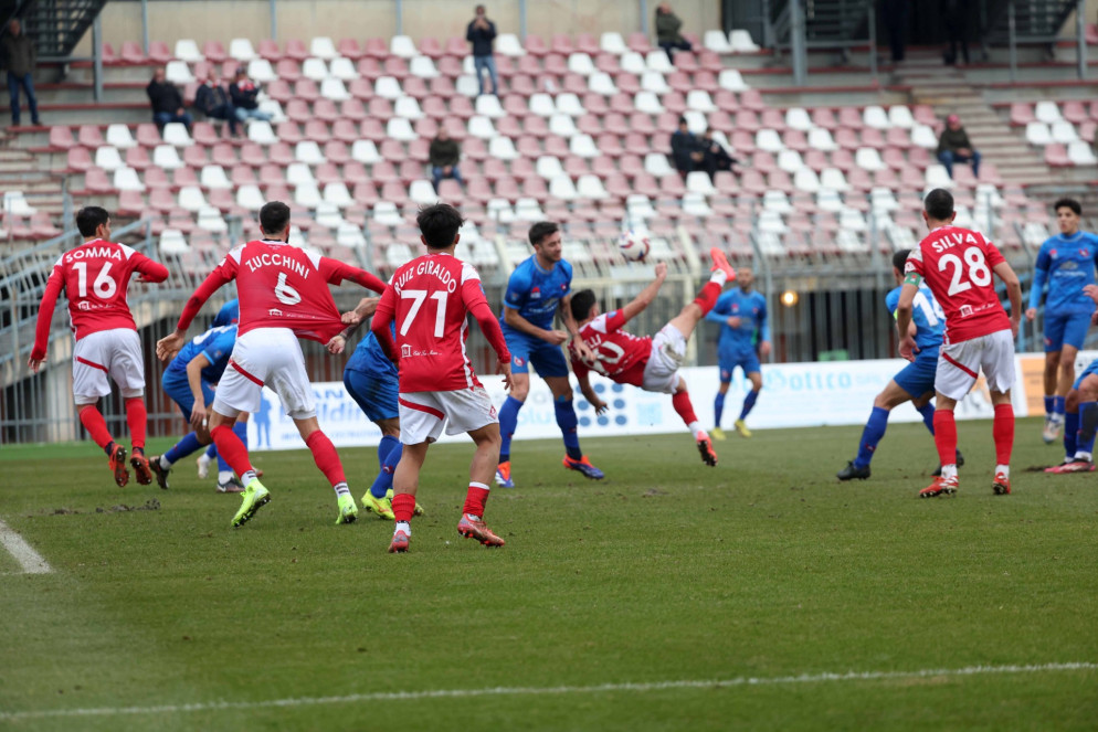 Grande chance al 38’: Ruiz scappa sulla sinistra e crossa dietro, Castelli lascia a Tentoni che però è ribattuto dalla difesa che mette in angolo. Poco dopo, alta la rovesciata di Castelli sull’assist di Sartore.