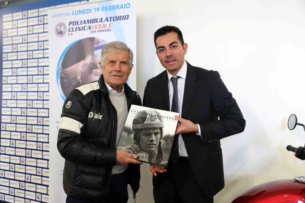 Alla presentazione volti molto conosciuti come il mitico Giacomo Agostini, lo stesso dottor Costa e l’ex campione del Mondo di motociclismo Roberto Locatelli.