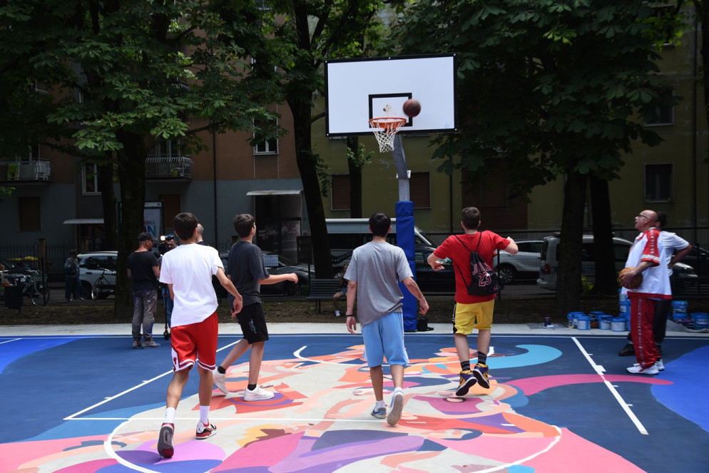 Ecco il nuovo coloratissimo campo da basket di via Negri: "Uno spazio per tutti