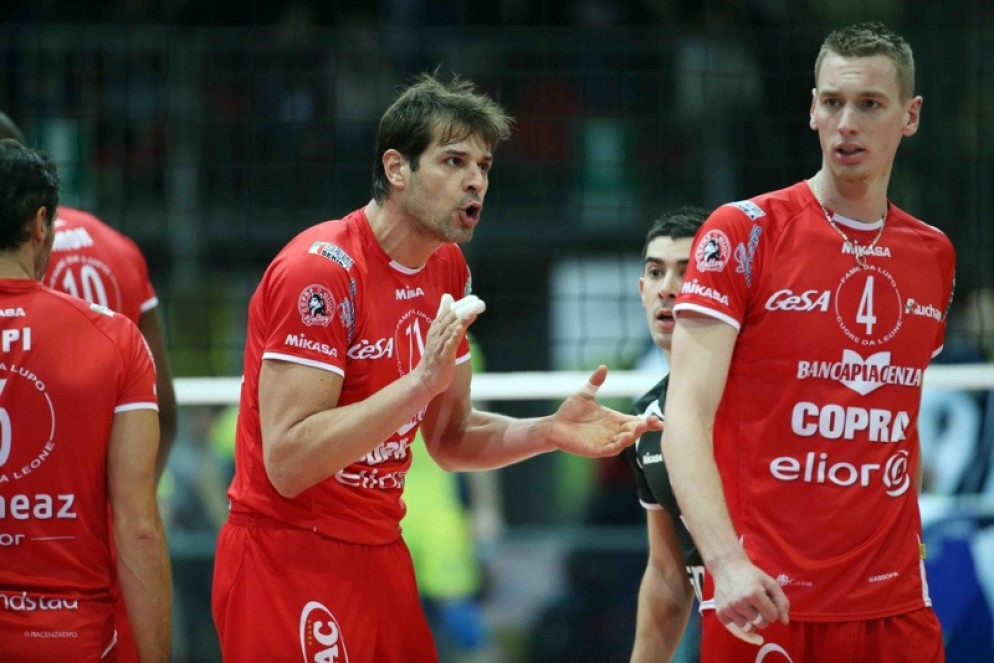 Il coach di Piacenza spedisce in campo il sestetto base, con De Cecco in regia, Vettori opposto; Fei e Simon sono i centrali, Papi e Zlatanov di banda con Marra libero.