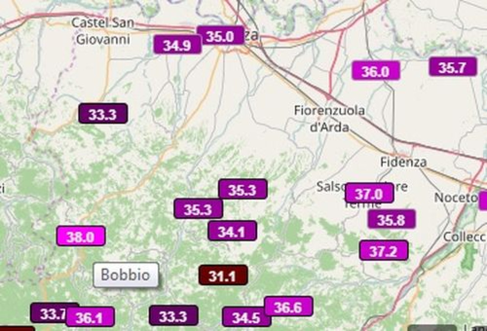 E’ l’effetto dell’anticiclone africano che sta portando la quinta ondata di calore del 2017. Oggi pomeriggio, 2 agosto, le centraline di Arpae hanno registrato 35 gradi a Piacenza città così come a Bettola, 34,9 gradi a San Nicolò, 36 gradi a Salsominore e ben 38 gradi a Bobbio. Anche a Selva di Ferriere la colonnina è arrivata a toccare i 30 gradi.