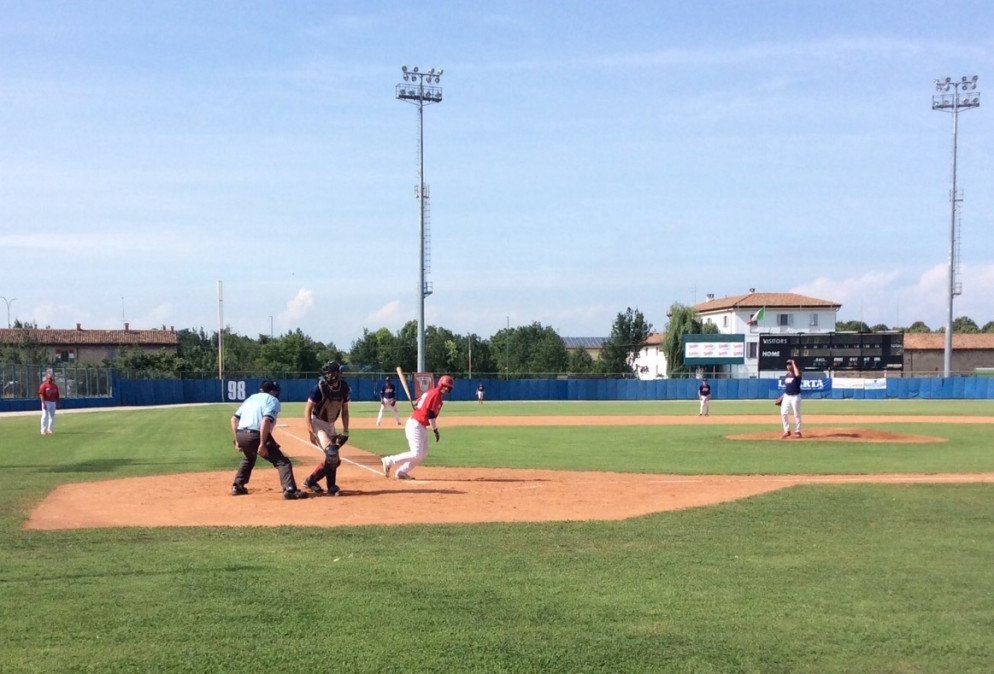 Più chiusa la partita del pomeriggio persa col minimo scarto dopo essere stati in vantaggio per sette innings. Peluso reggeva fin che poteva anche se le avvisaglie di una possibile rimonta milanese hanno aleggiato sul De Benedetti per tutto il match. Anche il 5-3 a metà partita non è bastato a contenere il ritorno del Milano che al penultimo attacco operava il sorpasso. Sorpasso che avveniva anche in classifica con Piacenza ora al quinto posto.