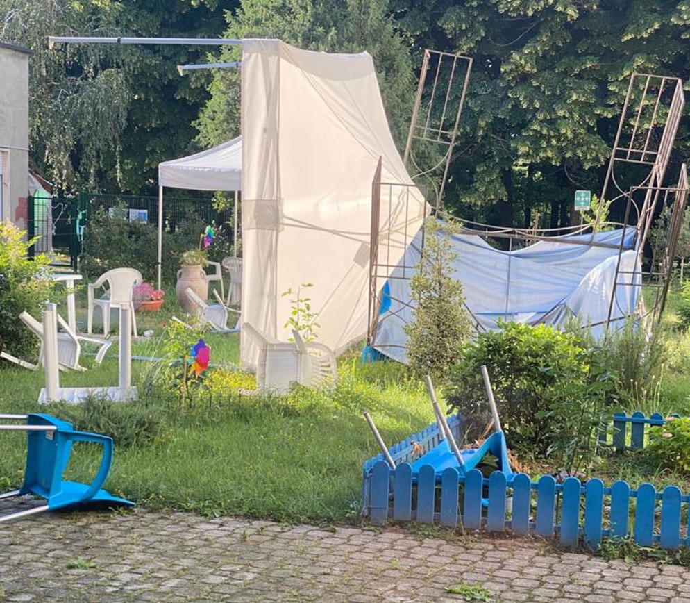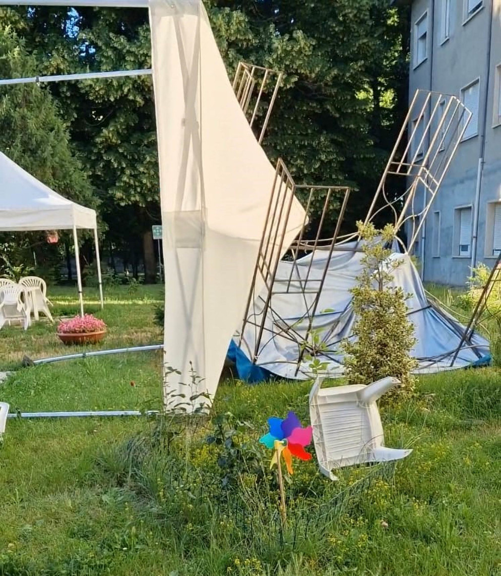 “È successo in pochissimi secondi” raccontano gli operatori. Dalle finestre che si affacciano sul giardino interno gli operatori ad un certo punto hanno visto sollevarsi sedie, tavoli e i gazebo sotto cui i parenti si siedono per incontrare gli anziani che risiedono nei reparti della casa protetta.