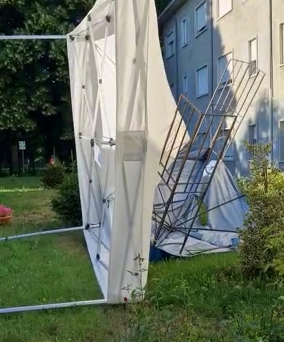 “I gazebo sono fissati al suolo con chiodi lunghi quaranta centimetri e tondi di ferro pesanti da quindici a venti chili. Non capiamo proprio come sia potuta accadere una cosa simile. I gazebo li abbiamo fissati nuovamente, ma uno si è talmente piegato che lo dovremo cambiare. Per questo facciamo appello al buon cuore di chiunque abbia la possibilità di darci una mano”. Le strutture metalliche servono agli anziani per le loro attività all’aperto e anche per incontrare i loro cari durante le visite settimanali.