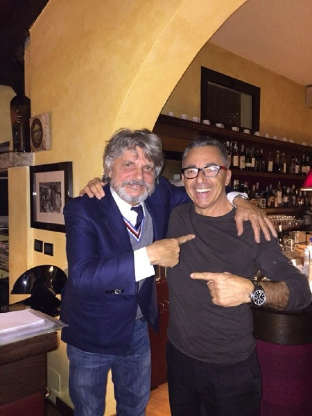 Serata piacentina per il vulcanico presidente della Sampdoria Massimo Ferrero che, venerdì scorso, ha preso parte ad una cena al Castellaccio di Travo. “Er Viperetta” è arrivato nel noto ristorante accompagnato da Carlo Osti, ex giocatore del Piacenza Calcio ora direttore sportivo della società blucerchiata, e altri due presidenti dal forte temperamento come Marco e Stefano Gatti, numeri uno del Piacenza Calcio. Un’amicizia di vecchia data quella tra Ferrrero e i patron del Piace che ha portato il dirigente romano ad accettare l’invito nel ristorante gestito da Graziano Solari, ritratto nella foto con Ferrero.