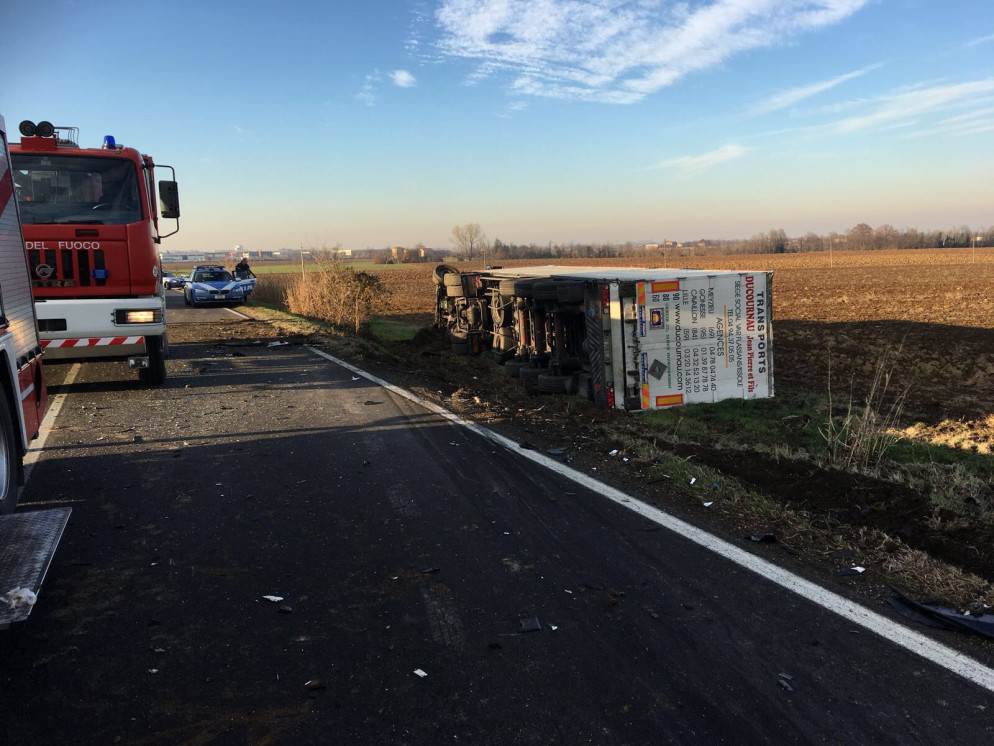 la moglie che viaggiava con lui è rimasta ferita in modo grave ed è stata trasportata all’ospedale di Parma dall’elisoccorso. Illeso il conducente del camion, un uomo di nazionalità francese che sottoposto all’alcoltest è risultato negativo. In base ai primi accertamenti della Polizia stradale, la Fiat Punto condotta dal 75enne avrebbe improvvisamente invaso la corsia opposta dalla quale proveniva il tir. In seguito allo scontro entrambi i mezzi si sono ribaltati e sono finiti nei campi adiacenti la carreggiata. Sul posto i soccorritori del 118, i vigili del fuoco che hanno estratto i feriti dalle lamiere, la Polizia stradale e i carabinieri di Fiorenzuola. Il tratto di via Emilia Parmense è stato chiuso al traffico per ore al fine di consentire i rilievi e il recupero dei mezzi.