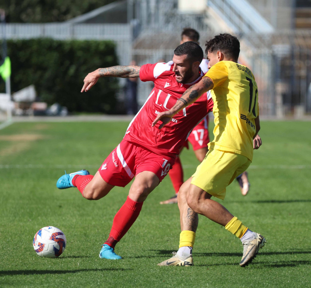 Il Lentigione parte senza timori reverenziali e, dopo un paio di sgroppate pericolose dell’ex biancorosso Babbi, all’11’ passa in vantaggio: su una rimessa laterale, dormita collettiva in area, con Grieco che mette dentro con un tiro sporco.