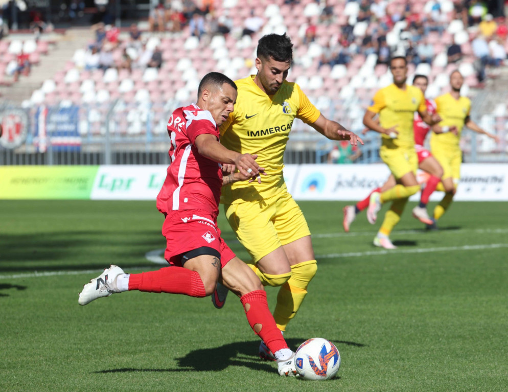 Il Piace subisce il contraccolpo e non riesce a macinare gioco, tanto che dalla tribuna del Garilli si alza anche qualche fischio. A cavallo della mezz’ora i biancorossi si svegliano: prima Iob dal limite trova la risposta di Gasperini, poi Recino anticipa tutti sul cross basso dalla sinistra di Mauri, ma trova ancora il portiere ospite. Il gol è nell’aria e arriva con una spettacolare rovesciata di Mauri, che risolve una mischia su corner.