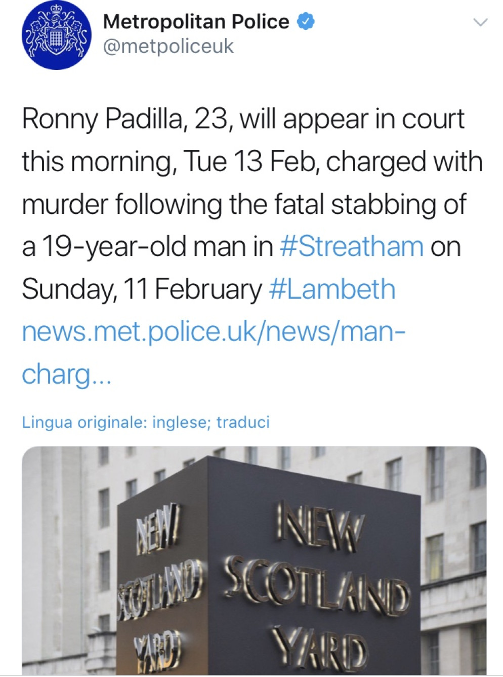 Addio a Sabri, 19enne partito da Piacenza per Londra, assassinato con una coltellata. La polizia ha fermato un 23enne