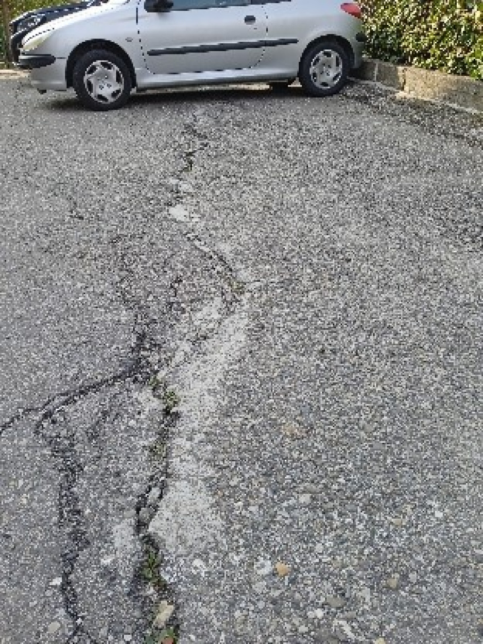 “Le vibrazioni dei camion che passano a ogni ora del giorno e della notte – dice Koci – alla lunga hanno danneggiato l’asfalto del cortile qui davanti e hanno fatto crepare in più punti il muro di contenimento. Devono sbrigarsi a fare la tangenziale a Castel San Giovanni. Da quando io abito qui la continuano a promettere ma poi non si fa mai”.