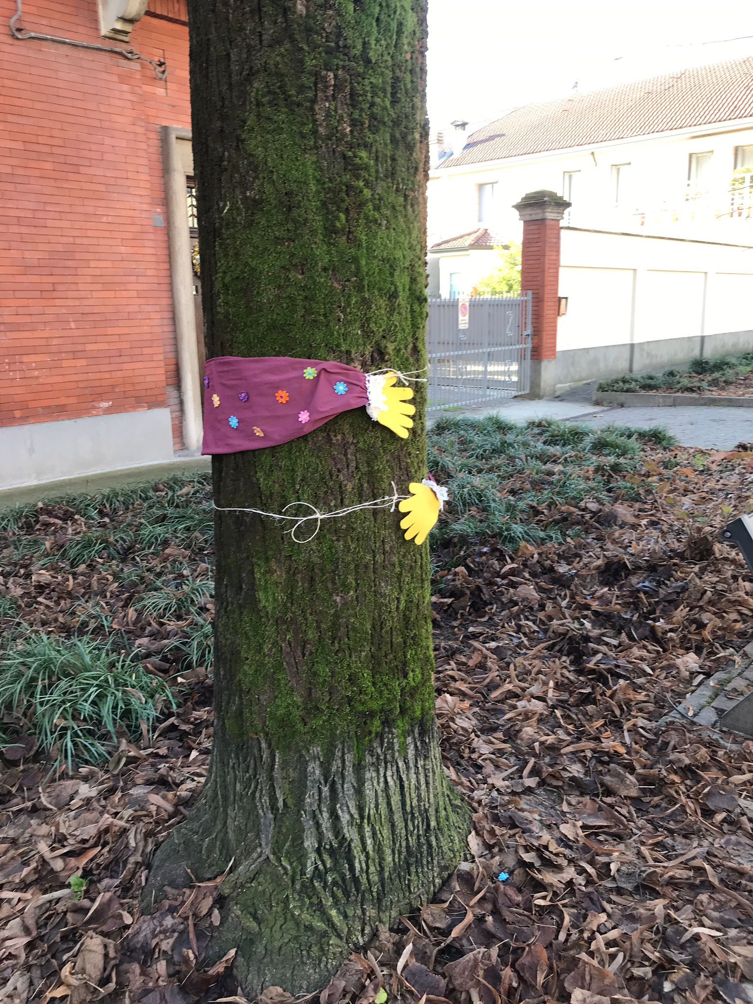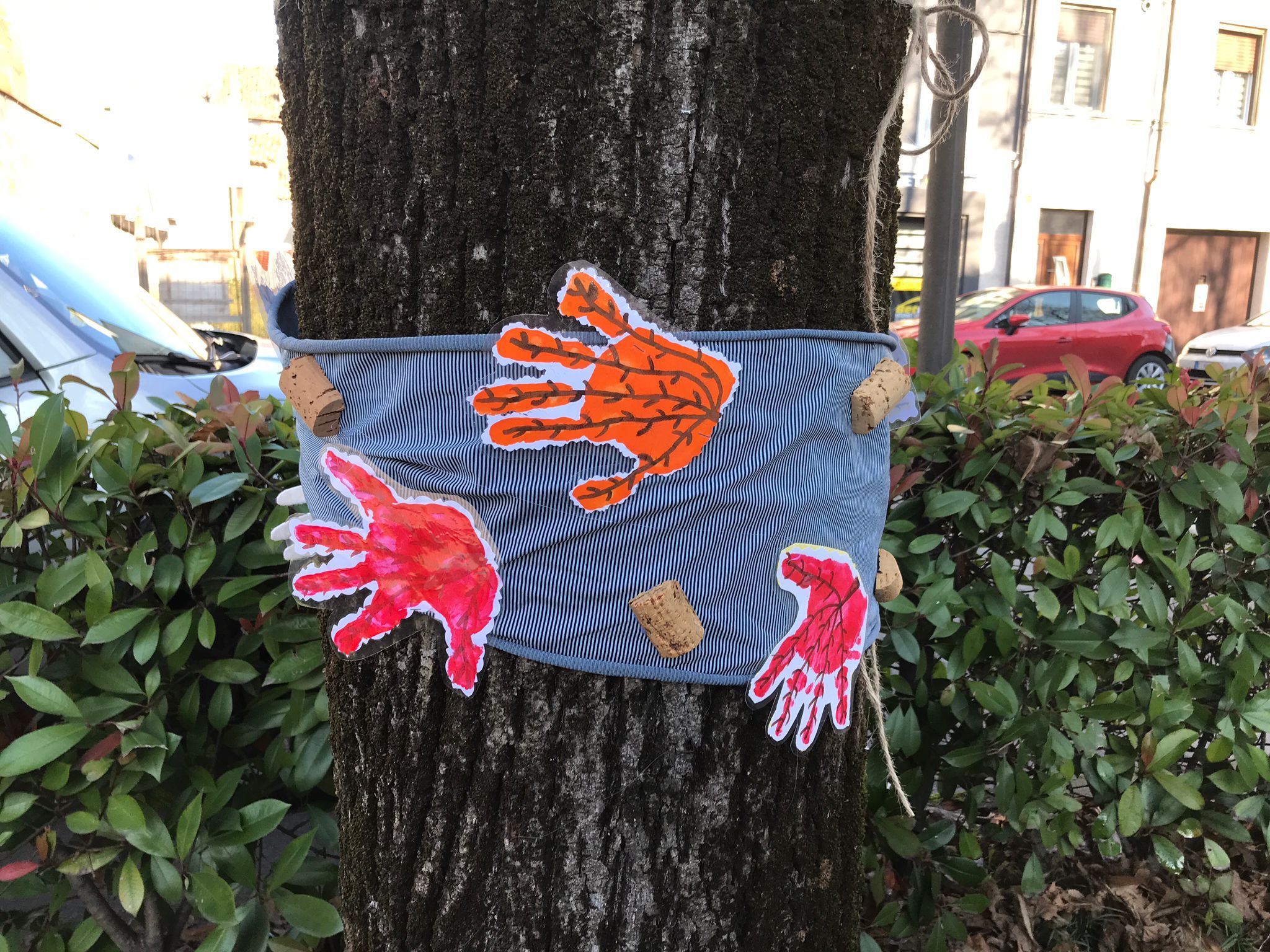 Un abbraccio fisico, ma anche un abbraccio fatto di stoffa, realizzato dagli stessi scolari